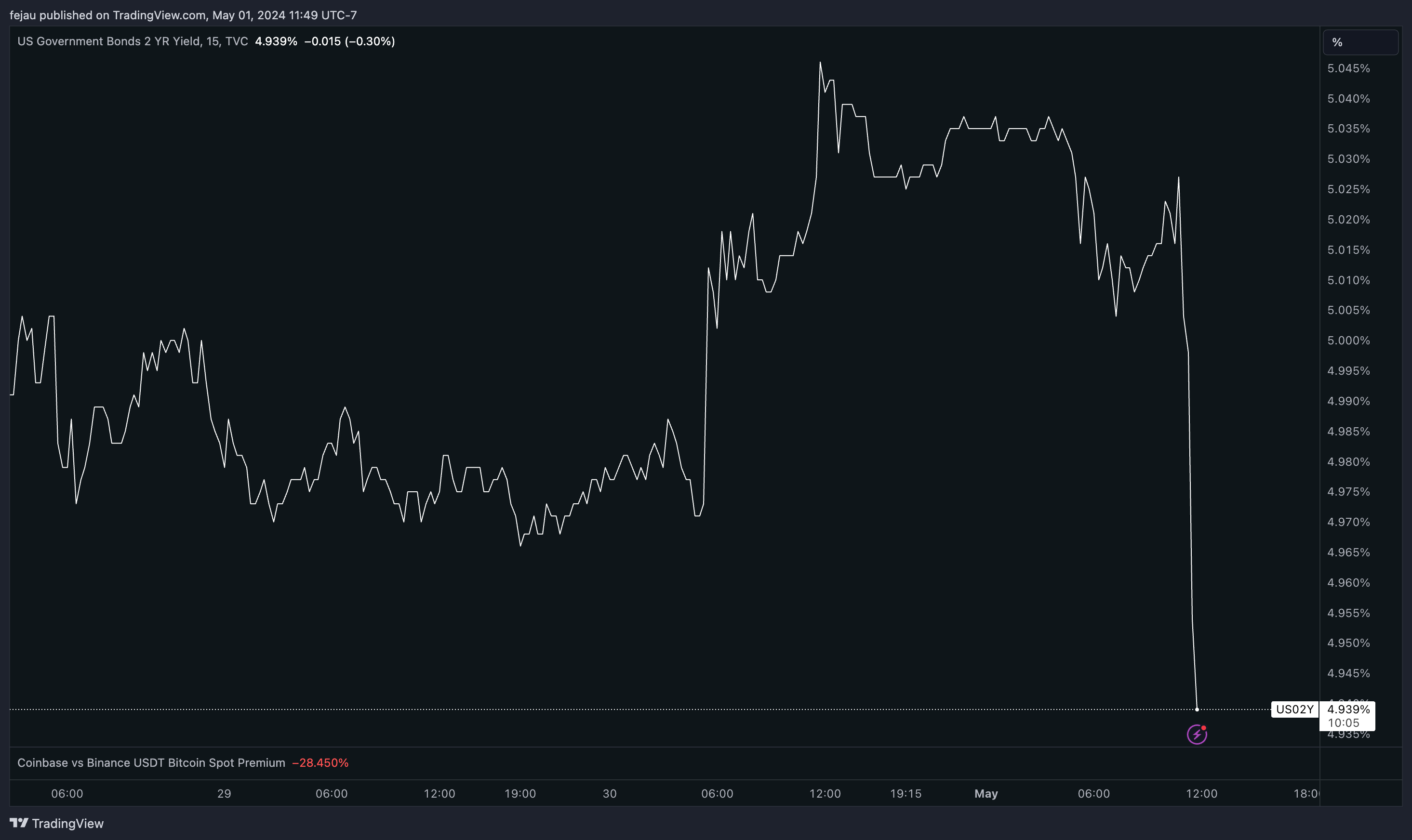 Looking at the 2y bond yield, we see that the market is certainly taking today as dovish.